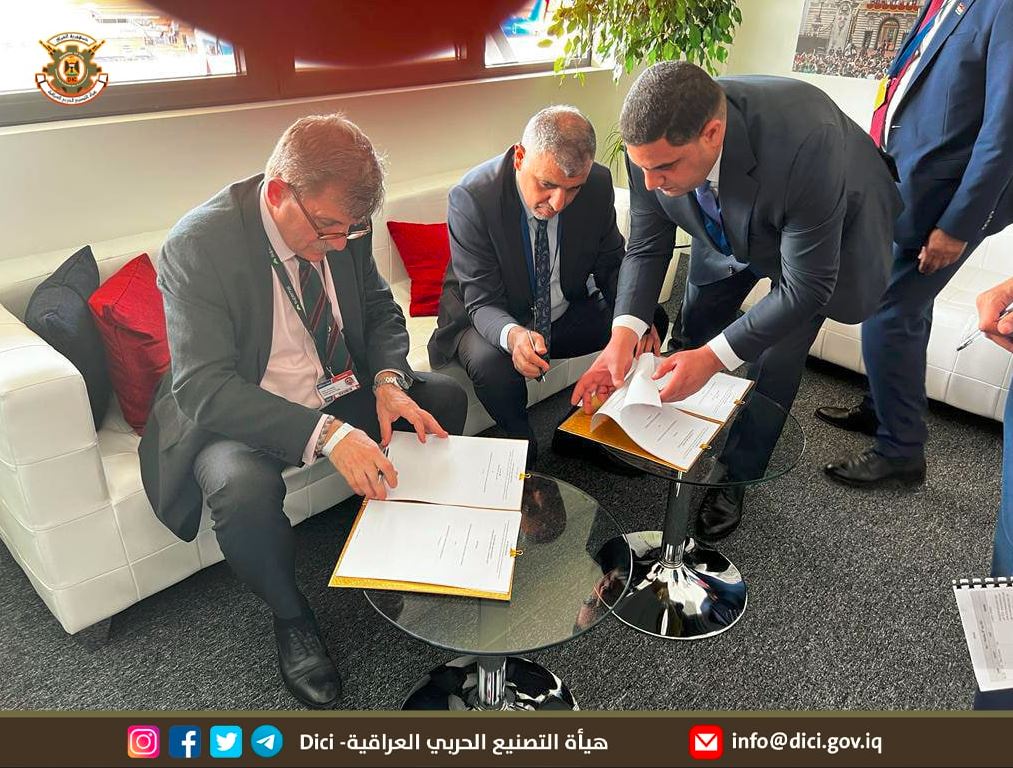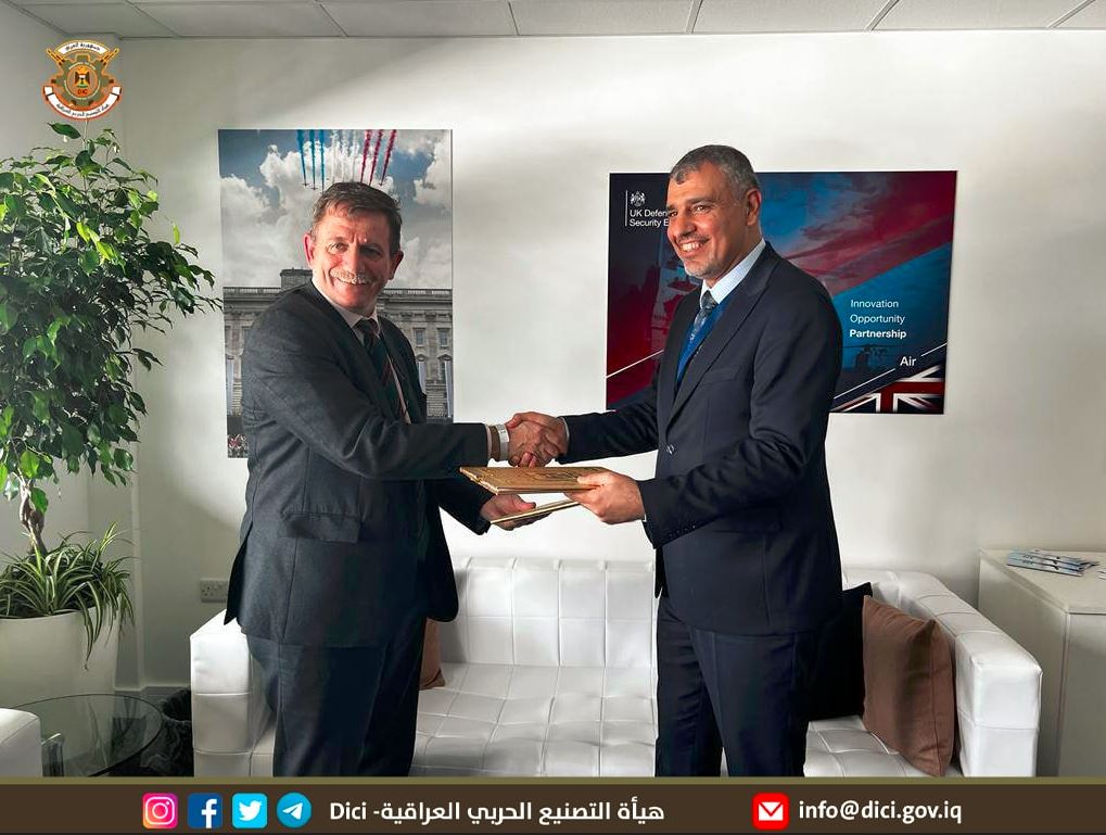 وقع رئيس هيأة التصنيع الحربي معالي المهندس محمد صاحب الدراجي مع رئيس مؤسسة الصادرات الحربية والامنية البريطاني مارك  كولساك، اتفاقية تعاون ثنائي بين العراق وبريطانيا في مجال الصناعات الحربية.
