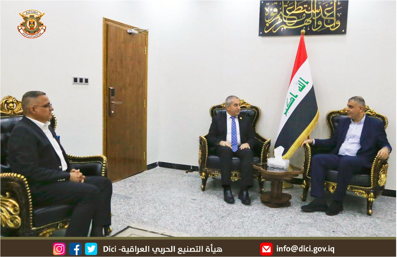 وبحث الطرفان خلال اللقاء معوقات العمل في هيأة التصنيع وسبل تجهيز مجلس النواب باحتياجاته الأمنية من منتوجات الهيأة.